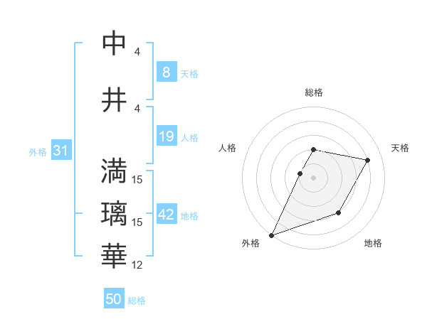 中井 満璃華さんを姓名の画数から五運を鑑定
