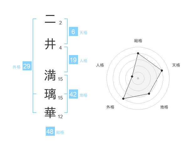二井 満璃華さんの天格は6画の4点!