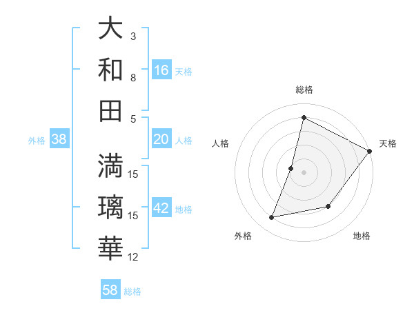 大和田 満璃華さんを姓名の画数から五運を鑑定
