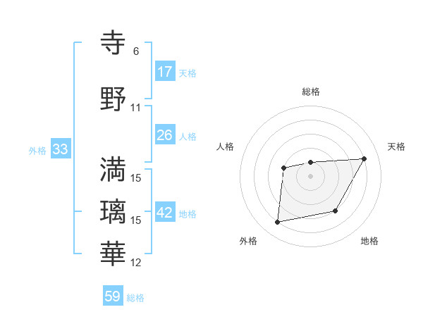 寺野 満璃華さんを姓名の画数から五運を鑑定