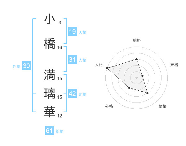 小橋 満璃華さんを姓名の画数から五運を鑑定