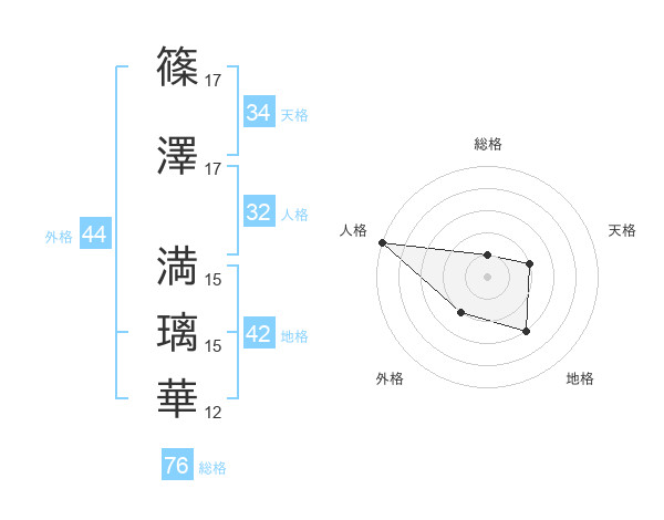 篠澤 満璃華さんの天格は34画の2点!
