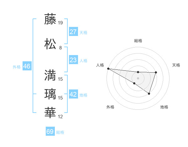 藤松 満璃華さんの総格は69画の1点!