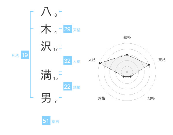 八木沢 満男さんを姓名の画数から五運を鑑定