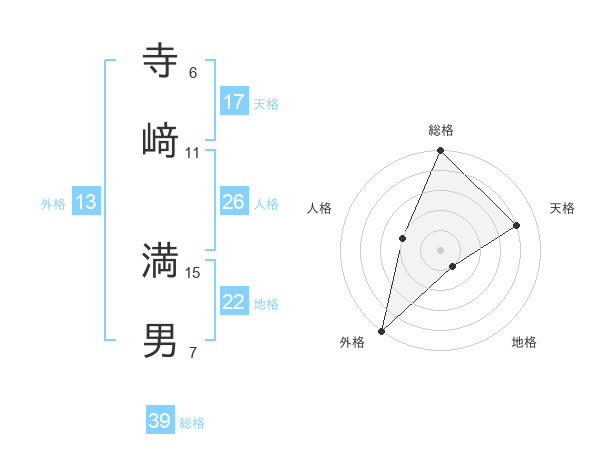 寺﨑 満男さんを姓名の画数から五運を鑑定