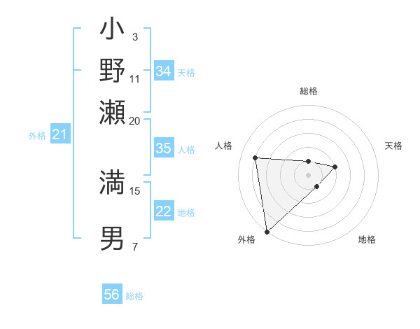 小野瀬 満男さんを姓名の画数から五運を鑑定