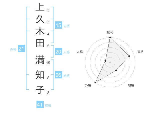 上久木田 満知子さんを姓名の画数から五運を鑑定