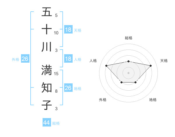 五十川 満知子さんを姓名の画数から五運を鑑定