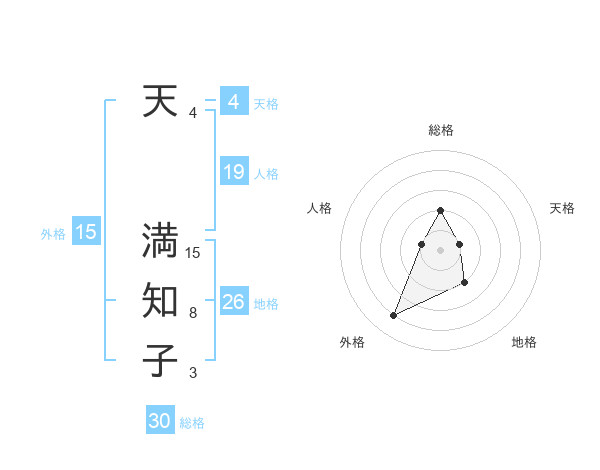 天 満知子さんの総格は30画の2点!