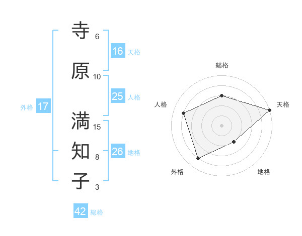 寺原 満知子さんの天格は16画の5点!