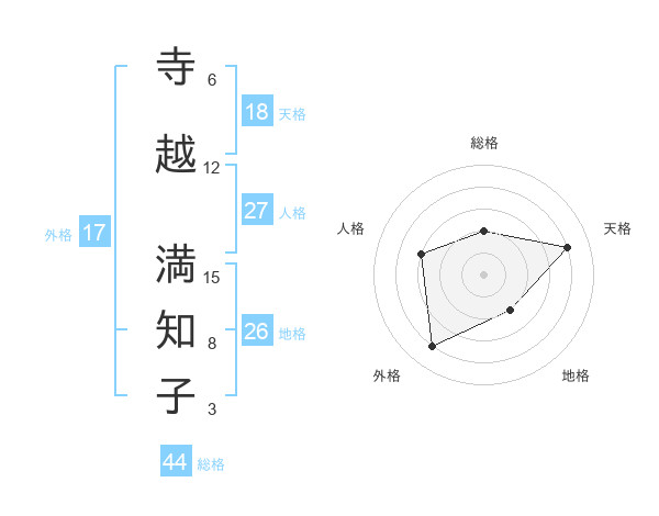 寺越 満知子さんの地格は26画の2点!