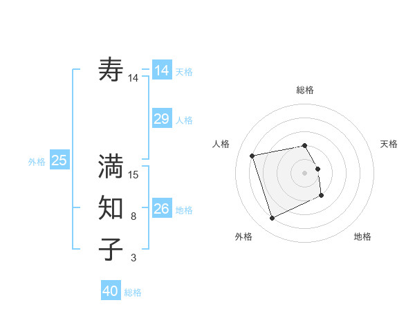 寿 満知子さんの天格は14画の1点!