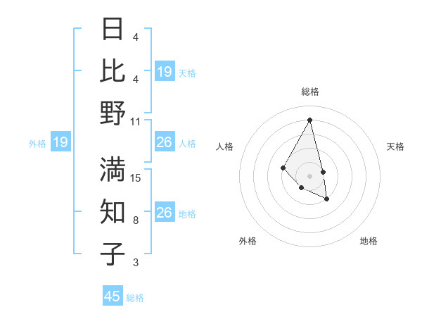 日比野 満知子さんを姓名の画数から五運を鑑定
