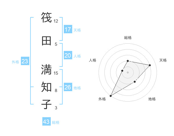 筏田 満知子さんの天格は17画の4点!
