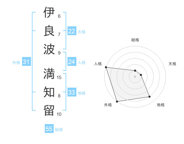 伊良波 満知留さんの外格は31画の5点!