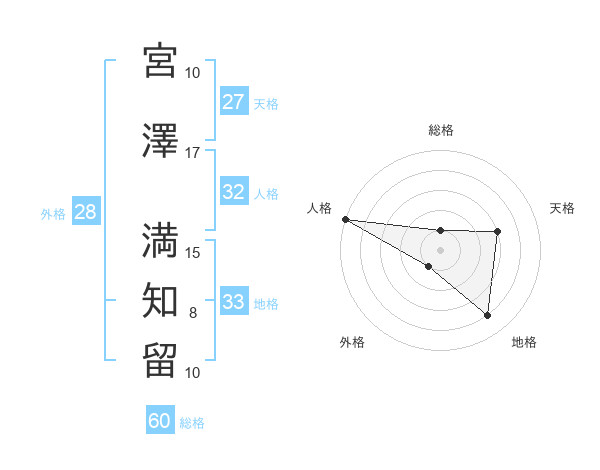 宮澤 満知留さんを姓名の画数から五運を鑑定