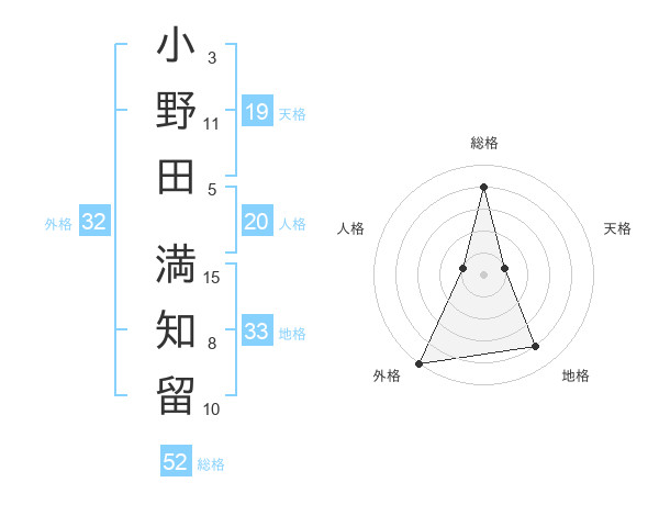 小野田 満知留さんを姓名の画数から五運を鑑定
