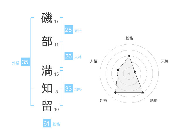 磯部 満知留さんを姓名の画数から五運を鑑定