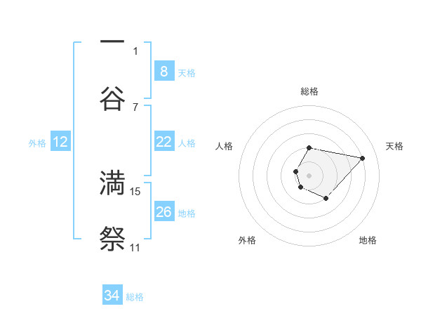 一谷 満祭さんの総格は34画の2点!