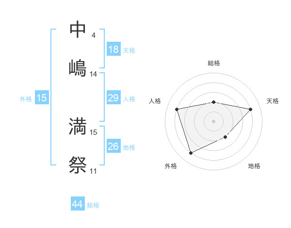 中嶋 満祭さんの総格は44画の2点!