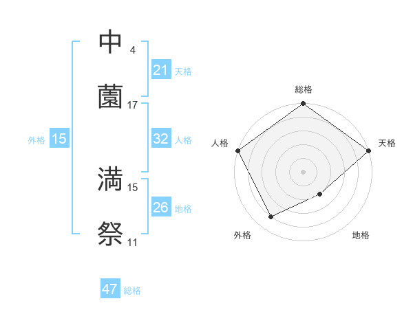 中薗 満祭さんの総格は47画の5点!