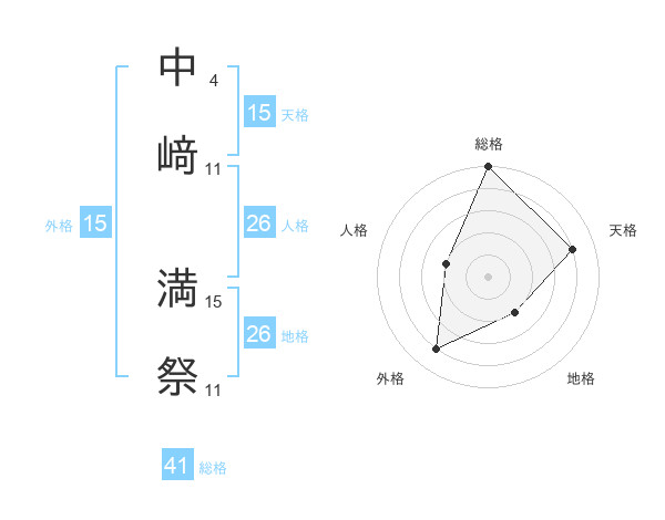 中﨑 満祭さんの天格は15画の4点!