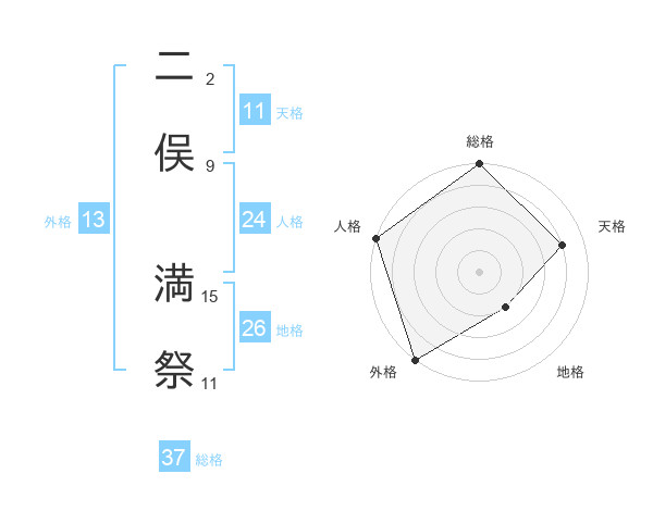二俣 満祭さんを姓名の画数から五運を鑑定