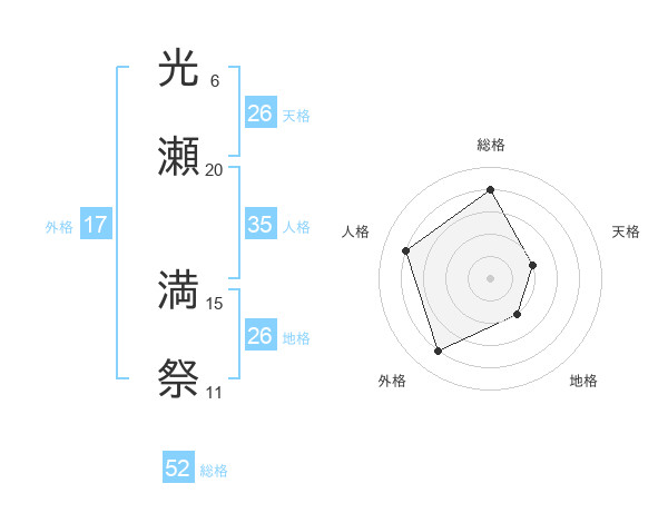 光瀬 満祭さんを姓名の画数から五運を鑑定