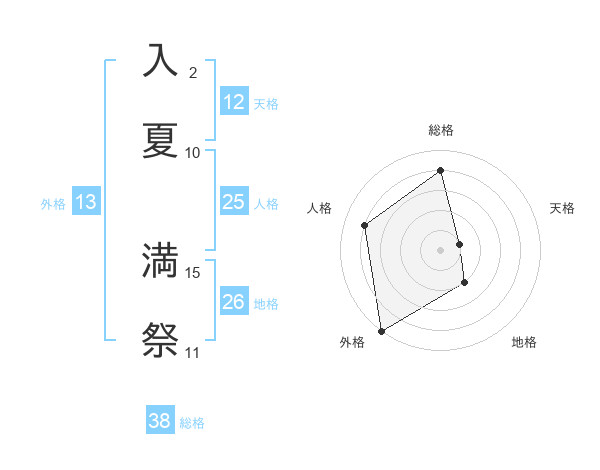 入夏 満祭さんを姓名の画数から五運を鑑定