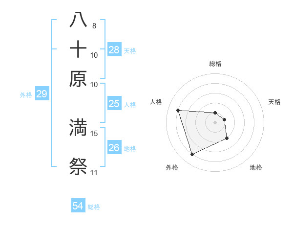 八十原 満祭さんを姓名の画数から五運を鑑定