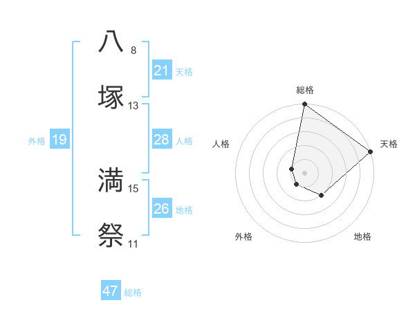 八塚 満祭さんの総格は47画の5点!