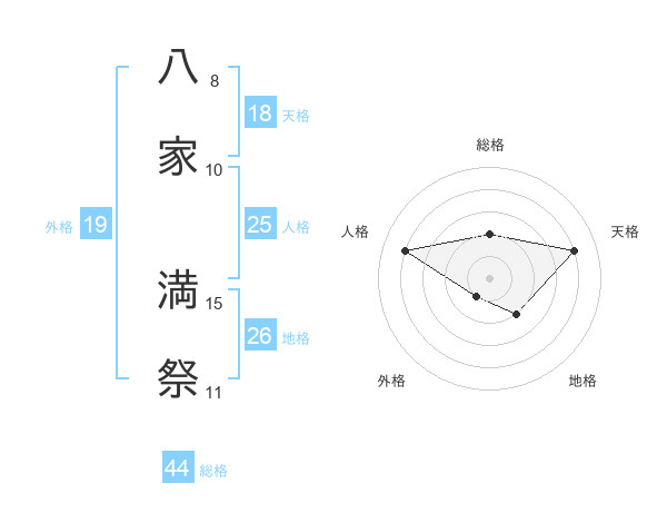 八家 満祭さんの総格は44画の2点!