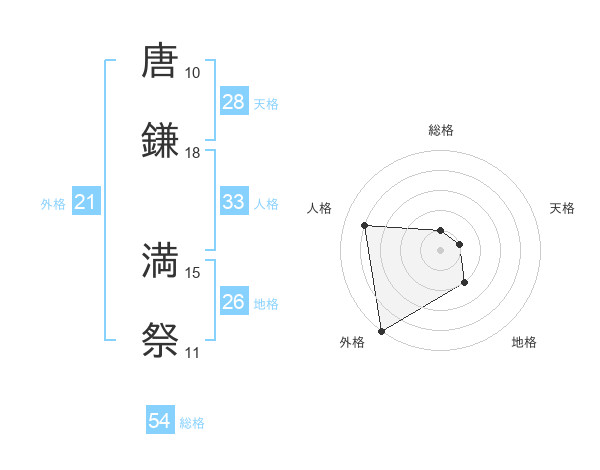 唐鎌 満祭さんを姓名の画数から五運を鑑定