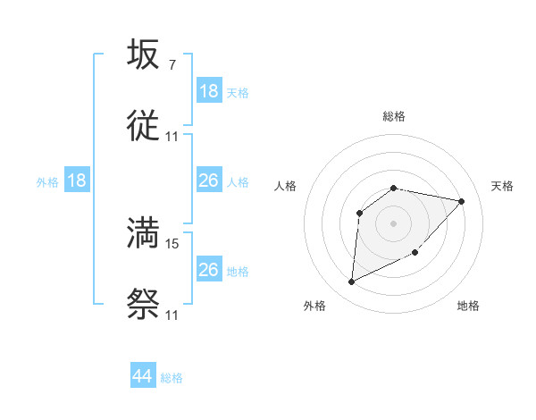 坂従 満祭さんの総格は44画の2点!