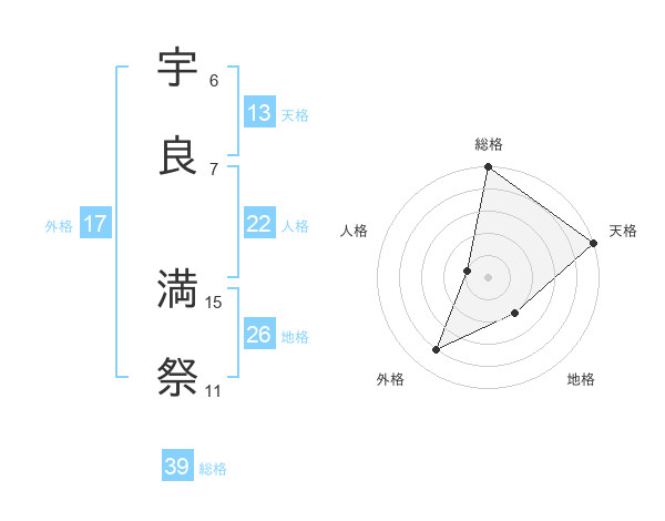 宇良 満祭さんの総格は39画の5点!