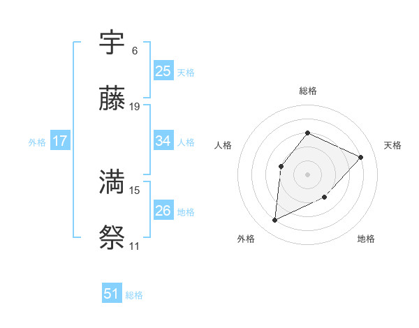 宇藤 満祭さんの総格は51画の3点!