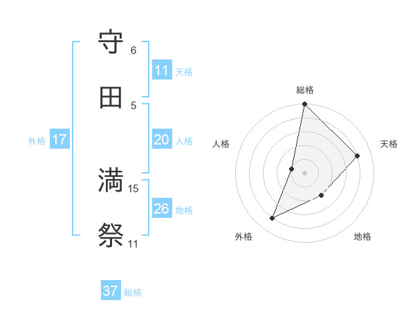 守田 満祭さんの総格は37画の5点!