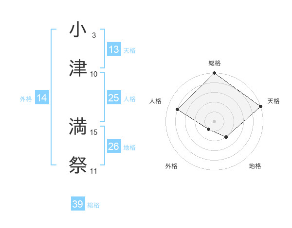 小津 満祭さんの総格は39画の5点!