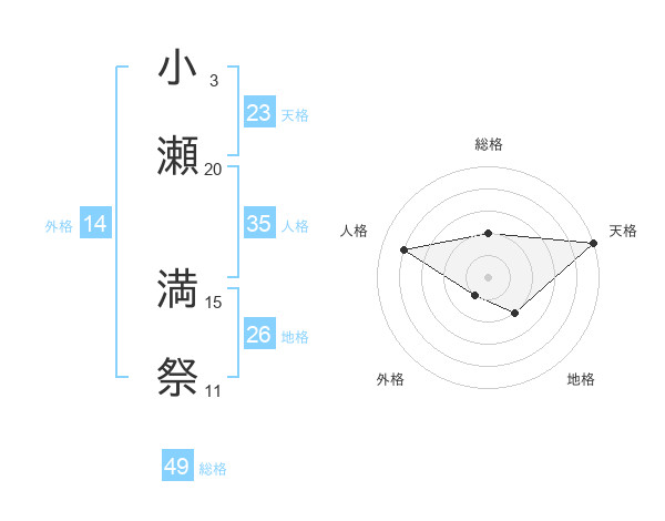 小瀬 満祭さんの総格は49画の2点!