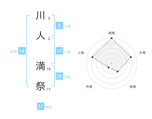 川人 満祭さんの総格は31画の5点!