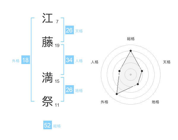 江藤 満祭さんの総格は52画の4点!