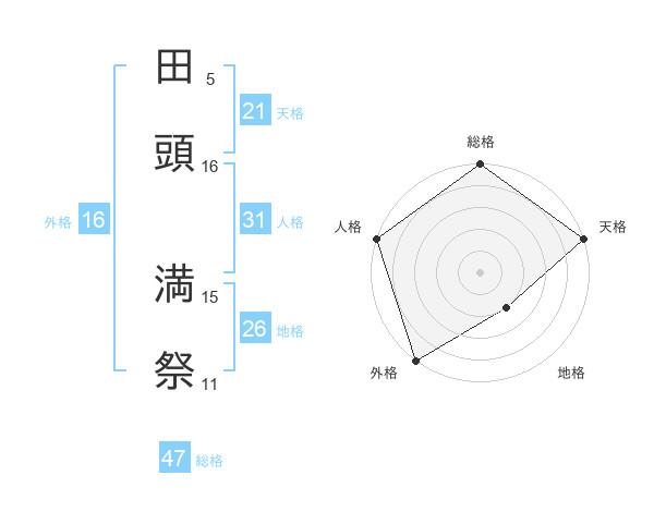 田頭 満祭さんの総格は47画の5点!