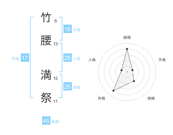 竹腰 満祭さんを姓名の画数から五運を鑑定