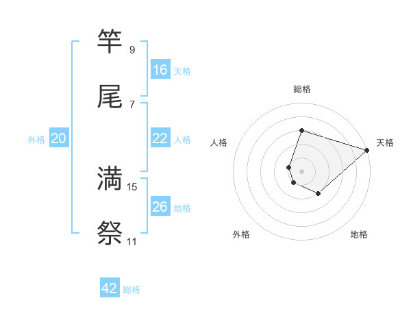 竿尾 満祭さんを姓名の画数から五運を鑑定