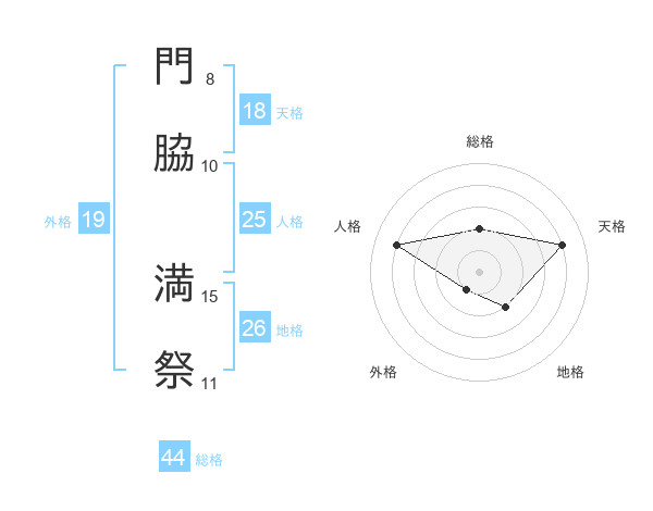 門脇 満祭さんを姓名の画数から五運を鑑定