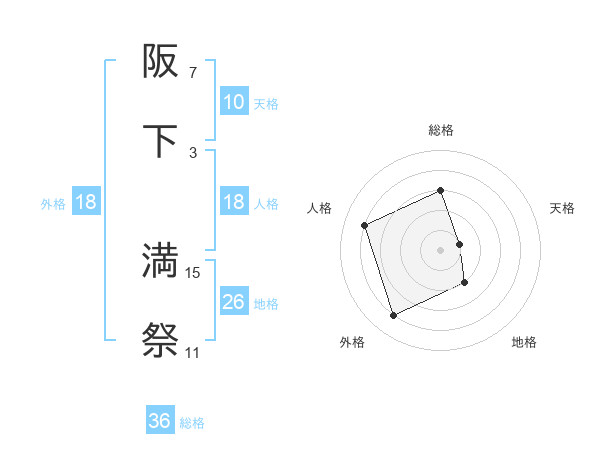 阪下 満祭さんの総格は36画の3点!