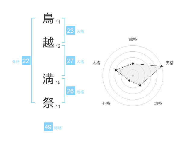 鳥越 満祭さんの総格は49画の2点!
