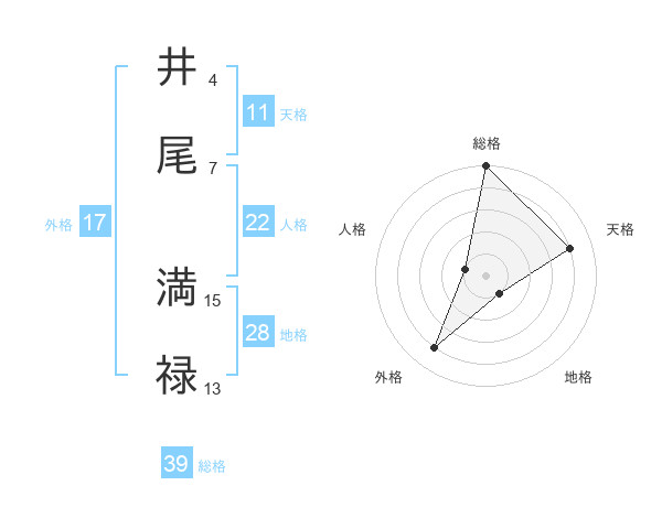 井尾 満禄さんを姓名の画数から五運を鑑定