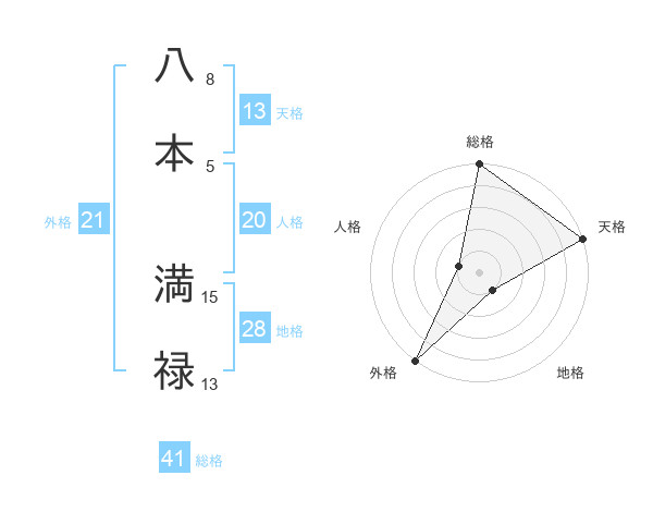 八本 満禄さんの外格は21画の5点!