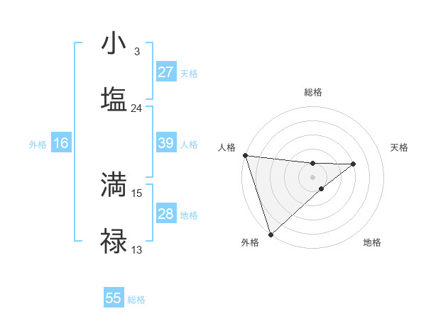 小塩 満禄さんの総格は55画の1点!